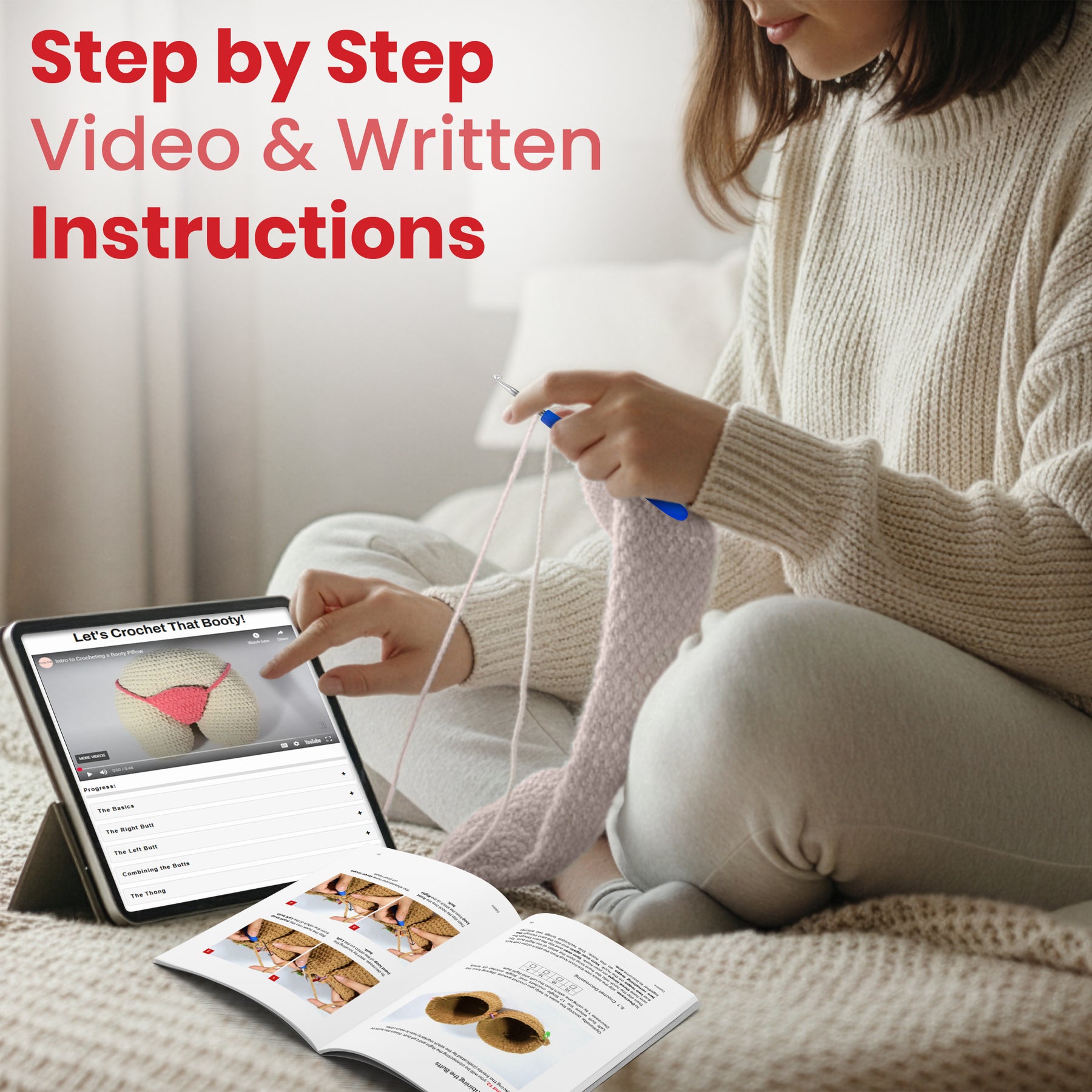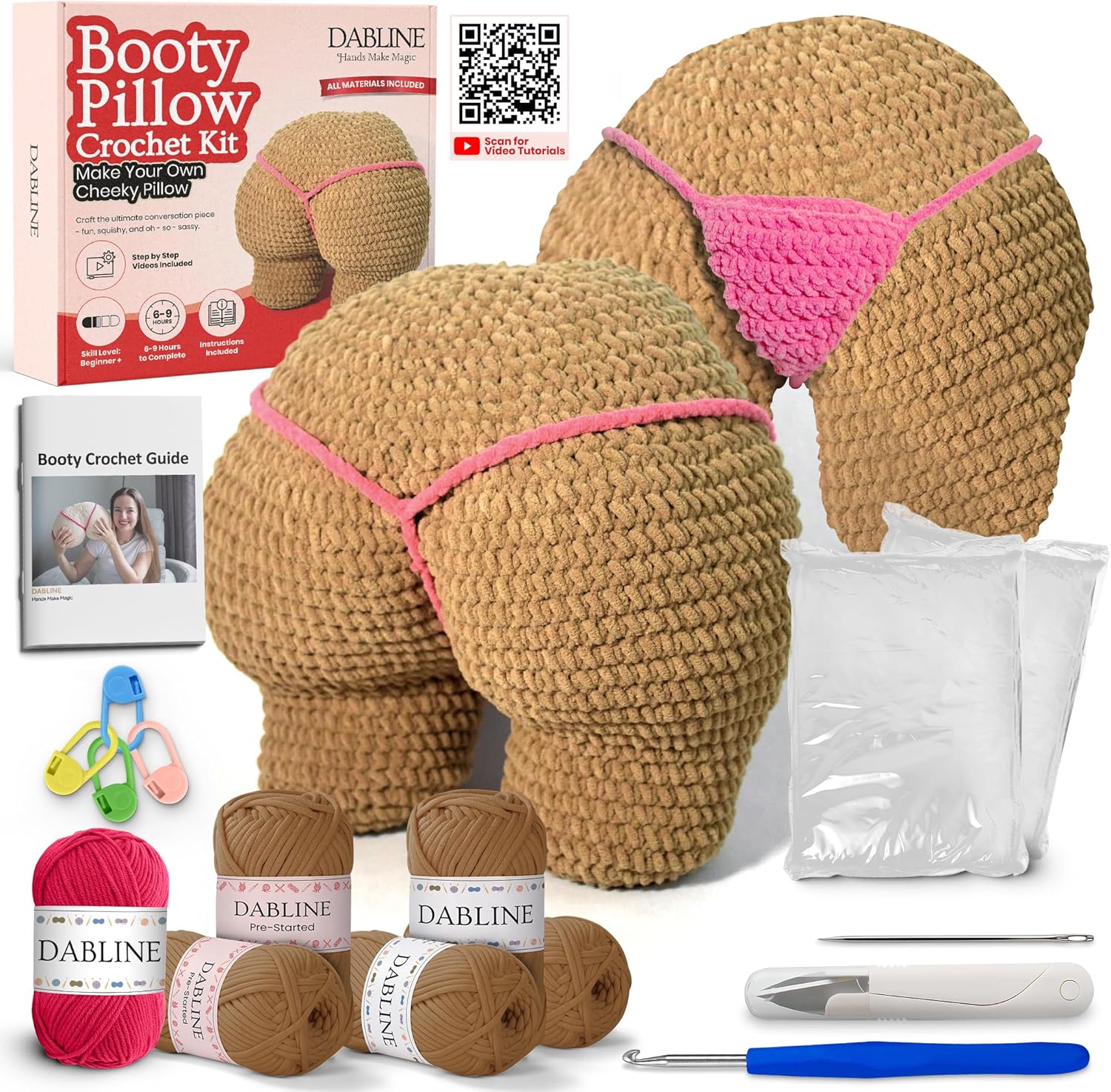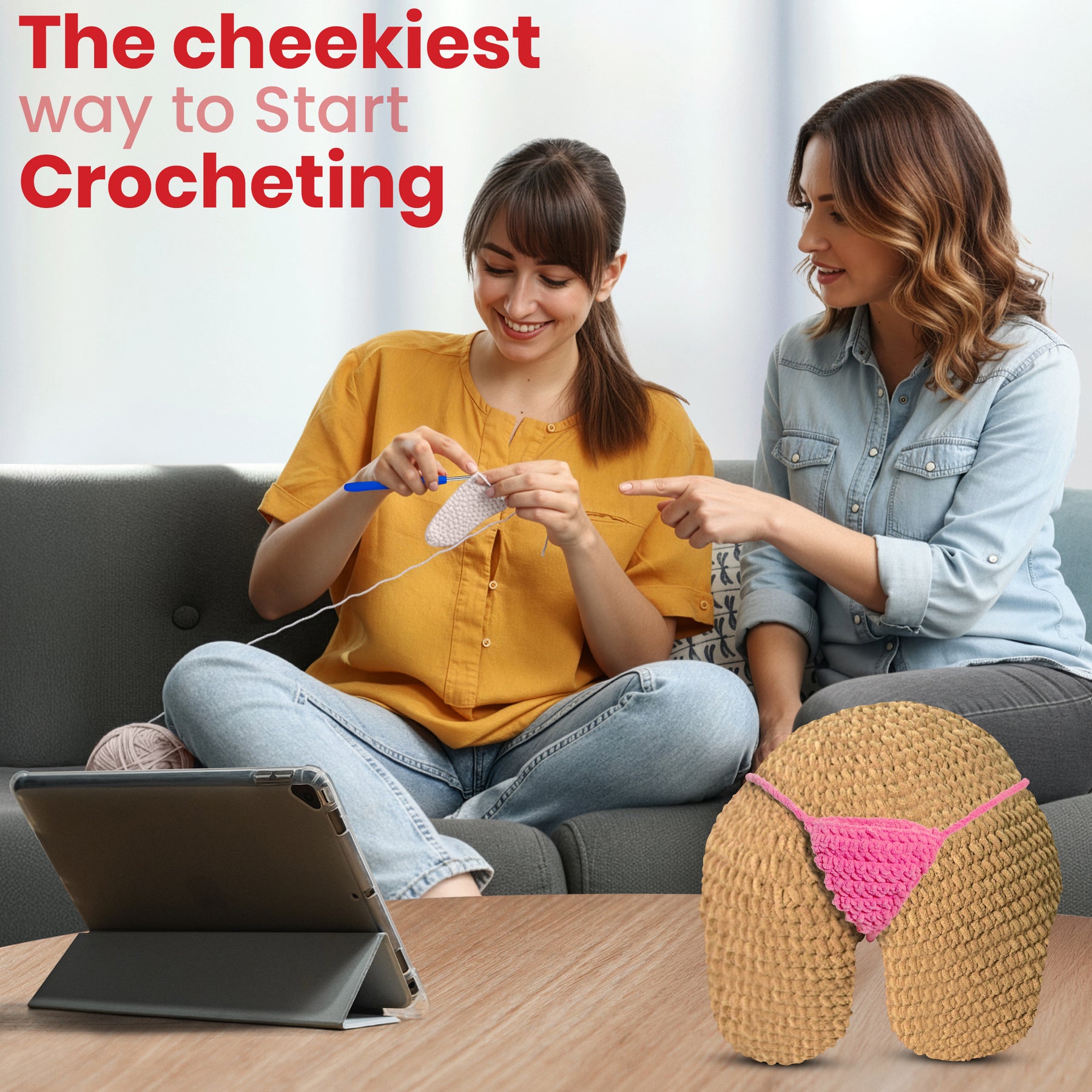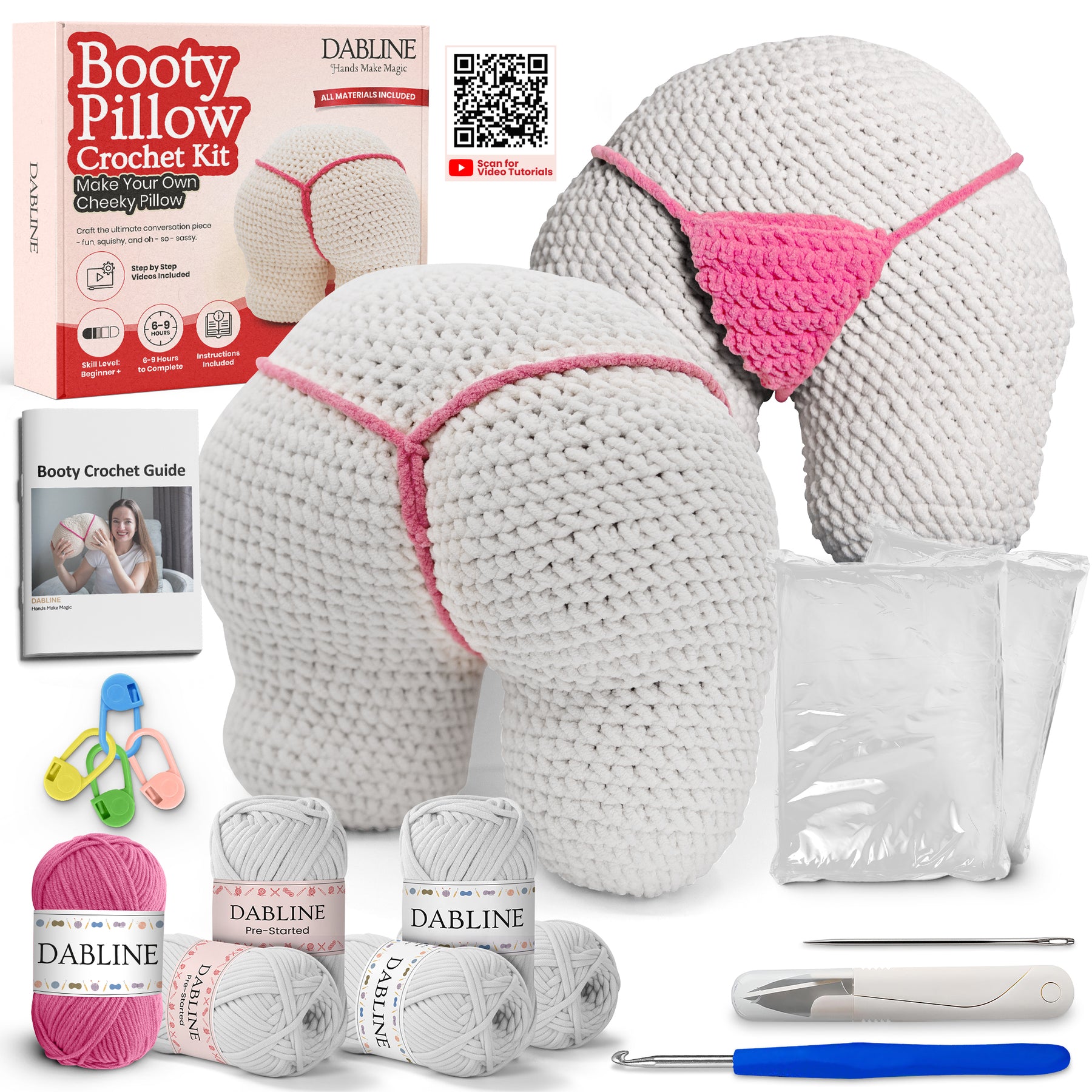 Booty Pillow Beginners Crochet Kit for Adults – Cheeky Crochet Starter Kit with Pre-Started Yarn & Step-by-Step Video Tutorials – Learn to Crochet Kit Gift for Women & Men