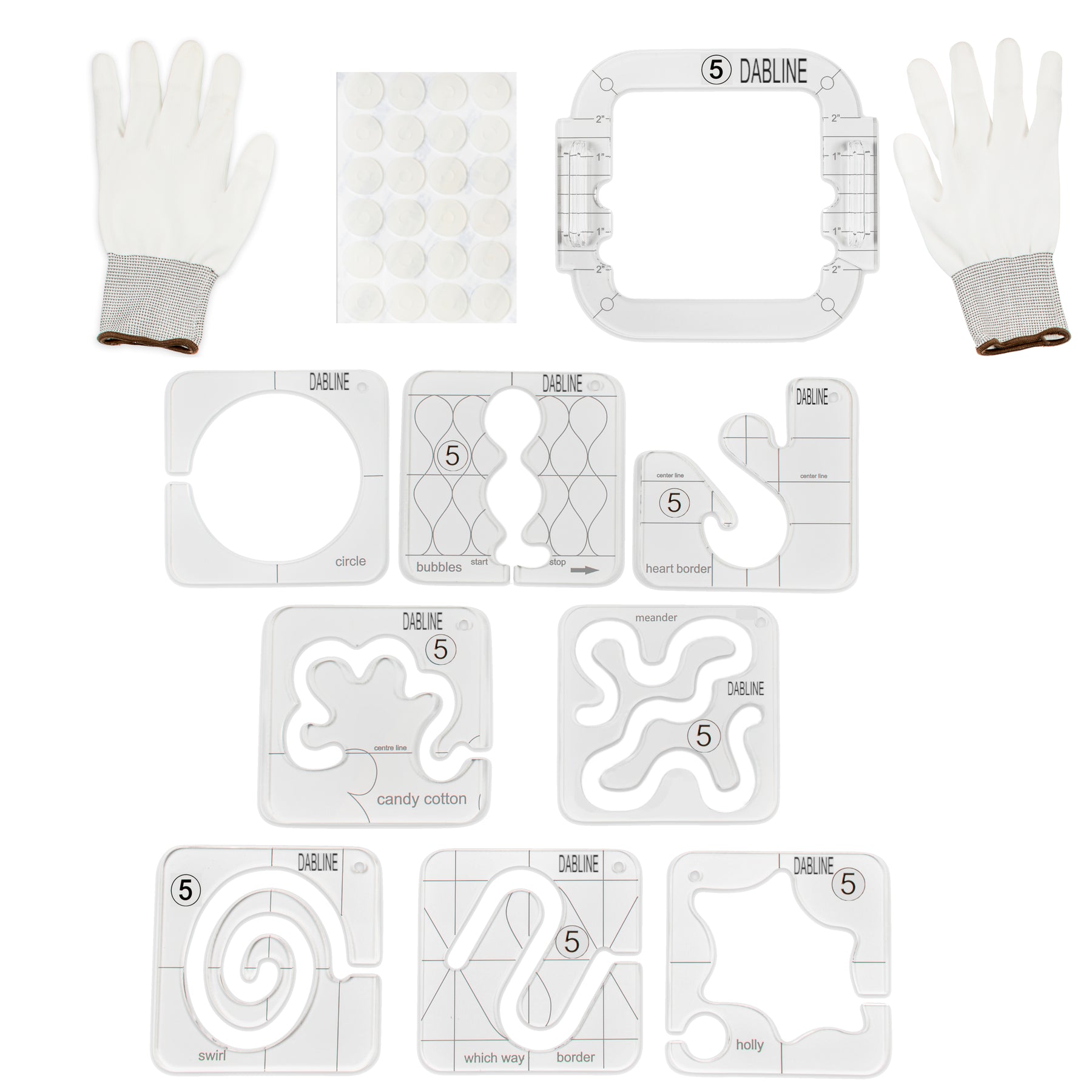 Package Includes - Our free motion quilting template set includes - 8 quilting templates, a quilting frame, and a pair of quilting gloves. A guide sheet is provided with each quilting template to help you create your creative quilting designs.